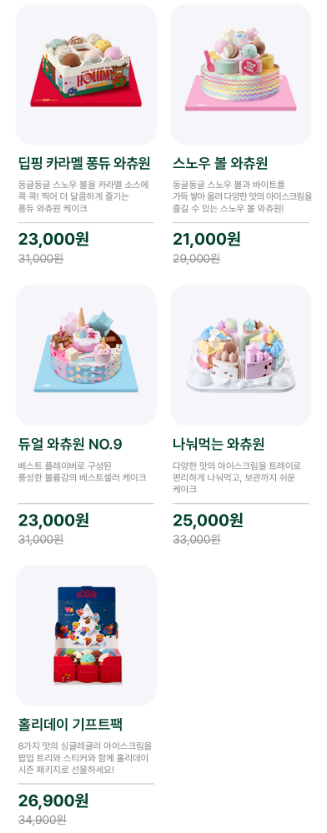 자체 앱을 깔고 로그인을 해야 하는 불편함이 다소 있긴 하지만, 케이크 강자답게 보기만 해도 맛있는 케이크들을 다양하게 출시하였습니다.