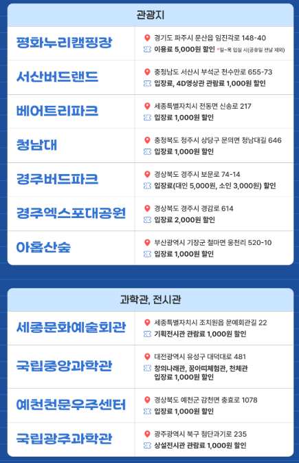 - 박물관, 수목원, 생태원, 영화관 등 관람료나 입장료 할인 혜택 (자세한 혜택 사항은 아래 '세금포인트 혜택 바로가기' 확인)