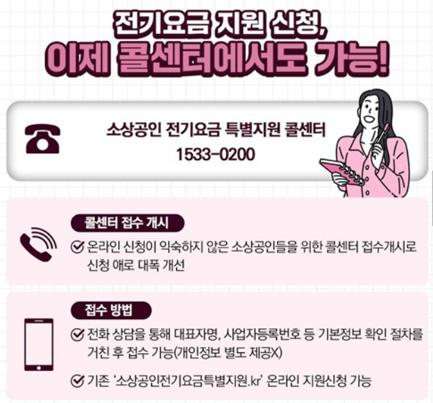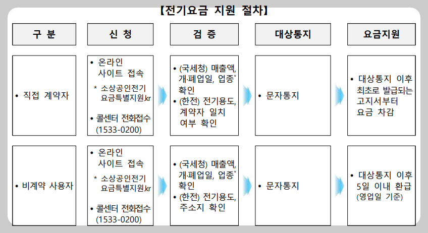 전기요금 인상에 따라 어려움을 겪는 소상공인들을 위해 전기요금을 지원하여 소상공인들의 부담을 경감하기위해 '소상공인 전기요금 특별지원 사업'을 실시하고 있습니다.