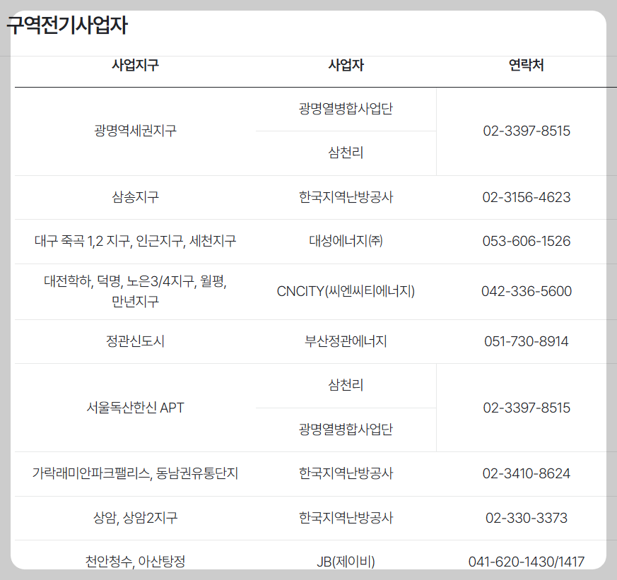 ** '구역전기사업자'로부터 전기공급을 받고 있는 고객은 해당 지역 사업자에 신청 및 문의 해주시기 바랍니다.