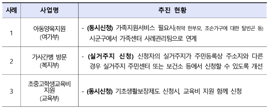 4) 신청기반 서비스의 신청방식 변경('당사자' 신청→'동시'신청 또는 '직권'신청)으로 각종 정책 지원 대상에 조손가족 유입 확대