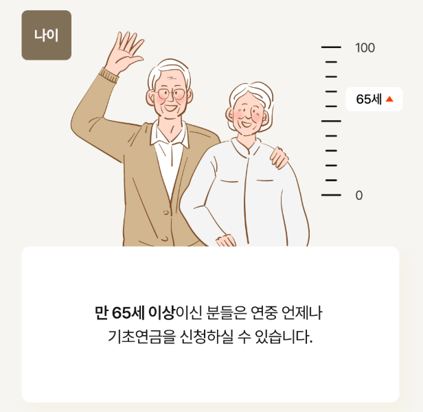 1) 만65세 이상의 한국 국적을 가지고 계시고 국내 거주하시는 어르신