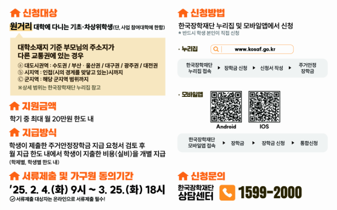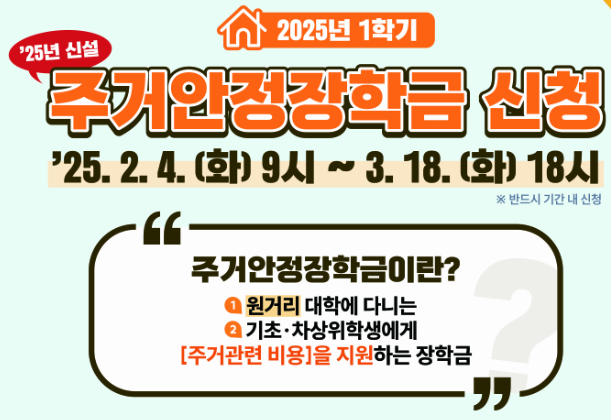 대학생들의 주거 부담을 덜어주기 위해 운영되는 2025년 1학기 주거안정장학금 신청이 시작되었습니다.